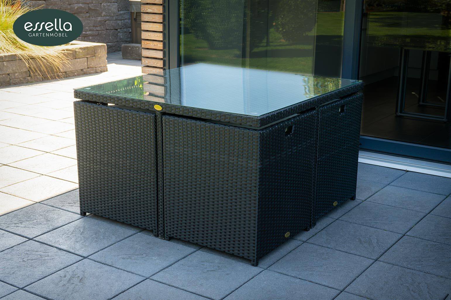 The major benefit for you is that the footstools fit precisely under the chairs, and the chairs under the table. Not only does this make this cubic-design seating group a real head-turner, it is also a genuine space-saving miracle. So when you’re not using it, this functionality means that it only takes up very little space, and it can be stored compactly and covered really easily.
