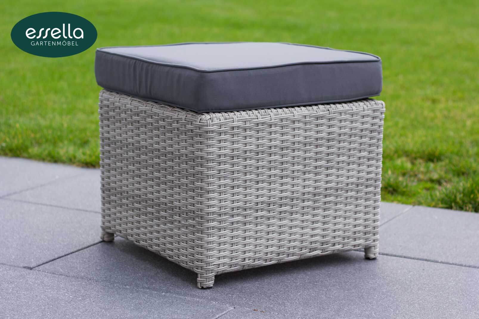 Delivery includes the comfortable cushions, the high-quality garden table and the practical footstools. The high-quality covers are water-repellent, robust and underline the elegant design of the poly rattan garden seating.